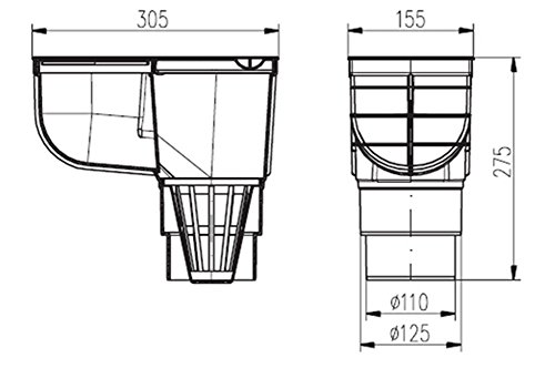 Regensinkkasten – Dachrinnenablauf – Regenrohrblauf