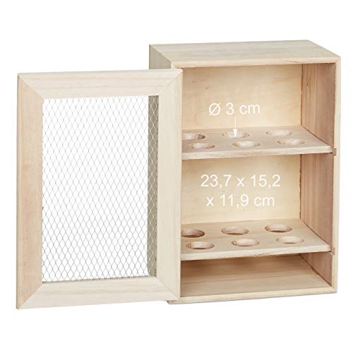 Relaxdays Eierschrank, für 12 Eier, Landhaus Stil, zum Hinstellen, Holz & Metall, Eierregal, HBT: 25 x 18 x 12 cm, natur, 1 Stück