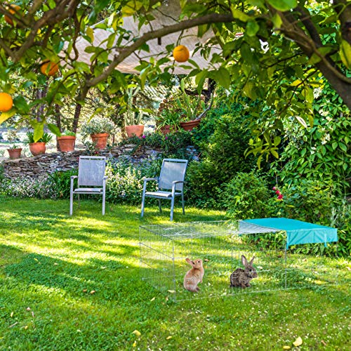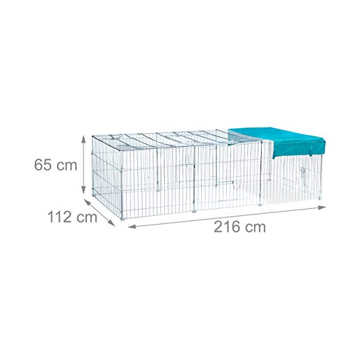 Relaxdays Freilaufgehege Kaninchen XL, mit Abdeckung, Sonnensegel, großes Outdoor Freigehege, HBT 65x112x216cm, verzinkt