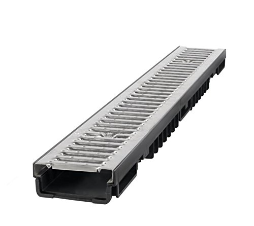 flache Entwässerungsgraben unter Zuhilfenahme von geringer Bauhöhe von 5,5 cm des Weiteren Metallrost. Länge 100 cm
