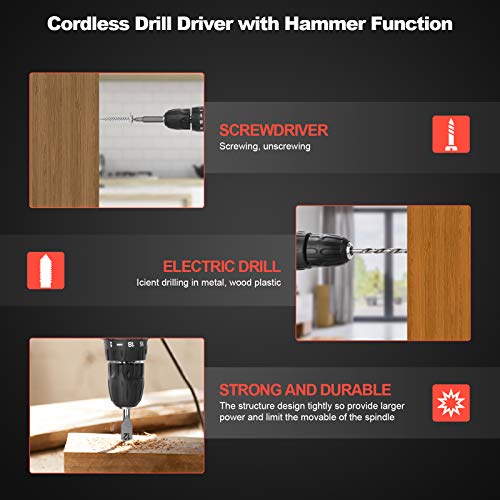 🛠ERGONOMISCHES DESIGN — Dieser elektrische Schraubendreherbohrer wiegt nunmehr 1,26 kg mit Batterie und bietet Ihnen ein angenehmes und weiches Griffgefühl und reduziert die Ermüdung während der langen wissenschaftliche Arbeit. Insbesondere das eingebaute helle LED-Licht bietet Ihnen mehr Komfort beim Arbeiten auch in der Dunkelheitsecke, und das 10-mm-Spannfutter hilft Ihnen, Bits schnell zu umschreiben.