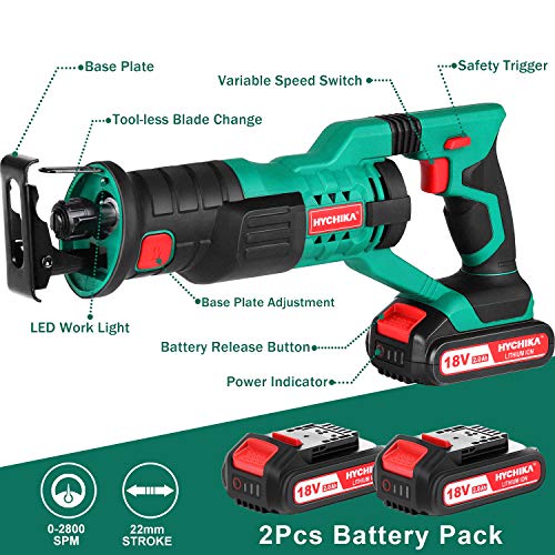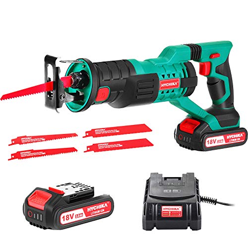 Säbelsäge, HYCHIKA 18V Akku Säbelsäge mit 4.0 Ah Batterie, mit variabler Drehzahl von 0 bis 2800SPM, 6 Sägeblätter…