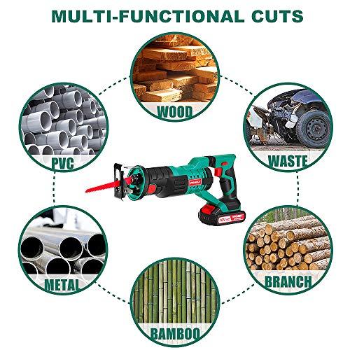 🌟【SICHERHEITSSCHALTER & LED LICHT】 Die Leistungsstarke 18V Säbelsäge ist mit Sicherheits- und Geschwindigkeitsschaltern ausgestattet. Somit werden bei unachtsamer Berührung Unfälle vermieden. Die Säge ist mit einer LED-Leuchte ausgestattet, die die Verwendung in dunklen Umgebung ermöglicht. Der Griff jedweder dem weichem Gummi und stoßdämpfender Struktur ist rutschfest und stoßdämpfend und bietet dadurch einen guten und sicheren Halt.