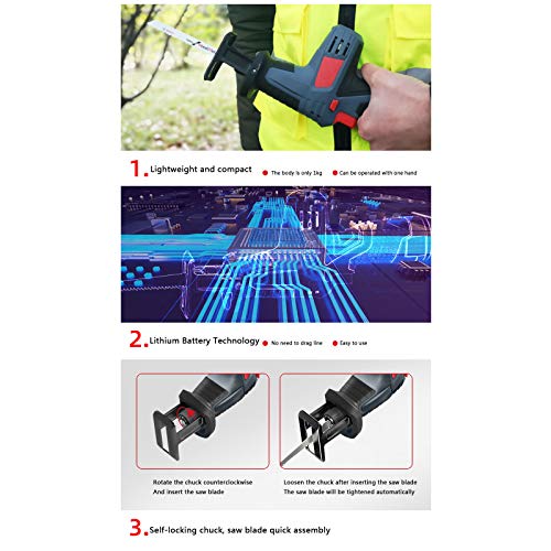 * Elektrische Säbelsäge – Elektrische Säge mit Sägeblättern um Kürzen von Holz, Stahl, Stein, mit LED-licht und verstellbarer Geschwindigkeit