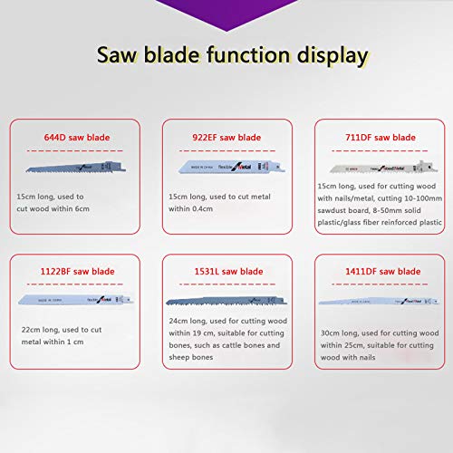√ 9 ERSATZKLINGEN: die Säbelsäge mit 9 abnehmbaren Klingen: 5 Klingen für Holz, 4 Klingen für Metall, maximale Schnitttiefe von 4 cm für Holz und maximale Schnitttiefe von 1 cm für Metall; 20 mm Hublänge für hochwertiges Kürzen.
