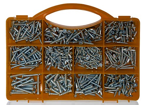 SCHRAUBEN SORTIMENT DER MEISTGEBRAUCHTEN SCHRAUBENTYPEN – Stocken Sie Ihren Bestand auf mit einem hochwertigen Sortiment an Metallschrauben und Holzschrauben mit selbstbohrendem Gewinde und Teilgewinden. Enthält die Gesamtheit Schrauben für die üblichen Tätigkeiten in Haus und Garten.