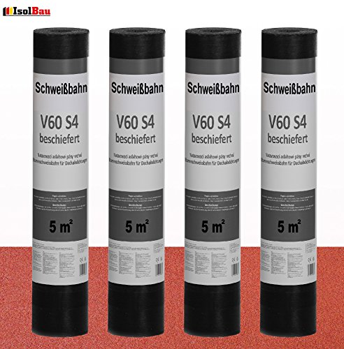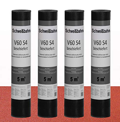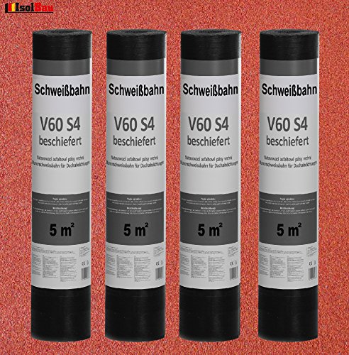 Isolbau Schweißbahn V60 S4 beschiefert – Bitumenbahn mit Glasvlies-Einlage zur Dachabdichtung – Rot, 4 x 5 m² Rolle