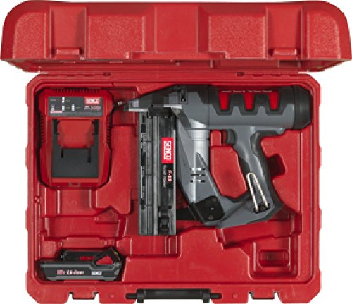 Die SENCO Fusion Technologie kombiniert die Qualität der Luft- und Schlauchlos- Technologie. Der F-18 verarbeitet 1,2 mm AX Stauchkopfnägel in den Längen von 15 mm bis 50 mm. Nach Betätigung des Abzuges wird ohne eine Anlaufzeit der Nagel eingetrieben. Die patentierten Geräte sind ideal zugunsten Werkstatt und Montage, wo Schläuche und unangenehmer Gasgeruch irritieren können. Die Eintreibtechnik funktioniert schlauchlos. Der Alu Zylinder ist sonderlich robust, wodurch das Maschine eine lange Lebensdauer aufweist. Inklusive schnell aufladbarem 18 Volt Li-Ion Speicherzelle und verstellbarem Gerätehalter. Es ist zudem ein Modus zugunsten Kontakt- und Einzelauslösung vorhanden. Die Tiefeneinstellung wird durch das Stellrad eingestellt. Die integrierte LED-Beleuchtung sorgt zugunsten einen stets ausgeleuchteten Arbeitsplatz. Das Magazin ist abnehmbar.