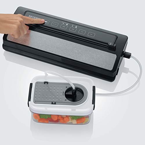 SEVERIN Vakuumiergerät mit integriertem Cutter (Inkl. 1 Rolle Vakuumierfolie, 5 Vakuumierbeutel, 1 Anschlussschlauch…