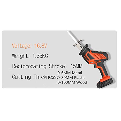 Leicht und Einhand Entwurf: only1.35kg, 16,8 V Speicherzelle-Säbelsäge nutzt leichtes Design anstatt eine bessere Kontrolle und Anpassungsfähigkeit in engen Räumen und macht es vielleicht, mit einer Hand zu bedienen.