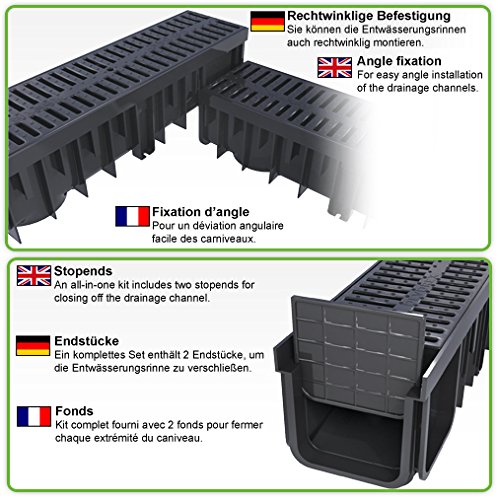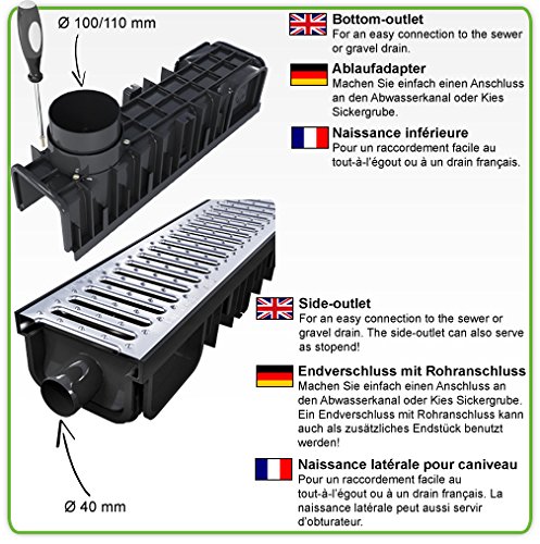 Mit diesem Entwässerungsrinnen Set beugen Sie einer Überschwemmung Ihrer Terrasse vor. Das Wasser wird über die ganze Rinnenlänge aufgenommen und abtransportiert. Unannehmlichkeiten als hinderliche Pfützen oder sogar eine Kehricht Ihrer Terrasse gebühren der Vergangenheit an.
