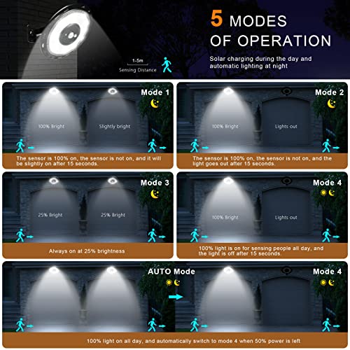 【5 Beleuchtungsmodi】MODUS1:In der Nacht,Lichter werden heller,wenn Menschen vorbeigehen, und Licht wird gedimmt,wenn niemand da ist.MODUS2:In der Nacht,Helle Lichter an,wenn Leute vorbeigehen,Licht aus,wenn niemand anwesend ist.MODUS3: Immer an mit 25% Helligkeit bei Licht in der Nacht.MODUS4:den ganzen Tag, Licht an,wenn Leute vorbeigehen,Licht aus,wenn Leute gehen.MODUS5:Immer den ganzen Tag an,wenn die Leistung bei 50 % oder darunter bleibt,es wird automatisch auf MODUS 4 umgeschaltet.