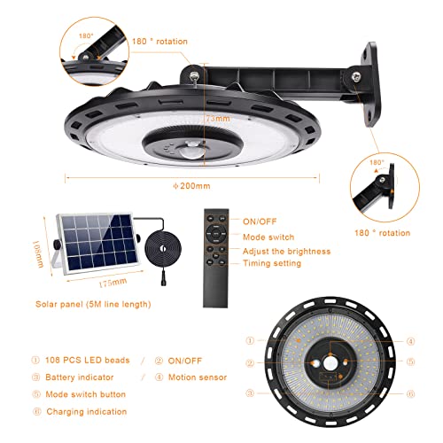 【Multifunktionale LED Solar Leuchten mit Bewegungsmelder】Einzigartiges UFO-Lichtkörperdesign,Unsere solar lampe kann auf zwei Arten montiert werden: Sie können sie als Kronleuchter aufhängen oder als Wandleuchte an die Wand hängen.Als Wandleuchte,Sowohl der Kopf als bekannt als der Arm können um 180° gedreht werden, um jede gewünschte Ecke zu beleuchten(Bitte installieren Sie die Sonnenkollektoren in Richtung Sonnenlicht für eine ausreichende Ladung)