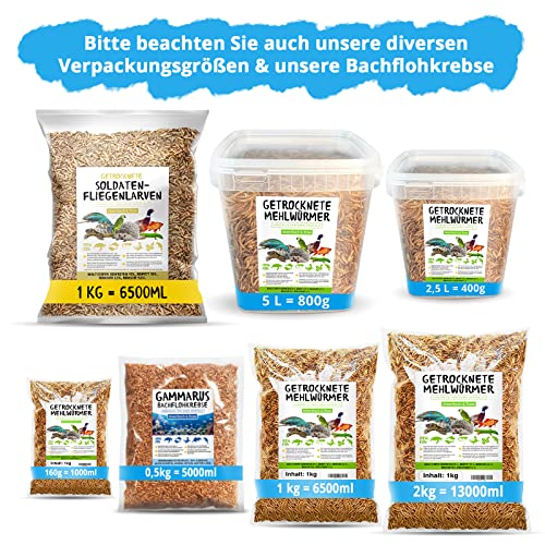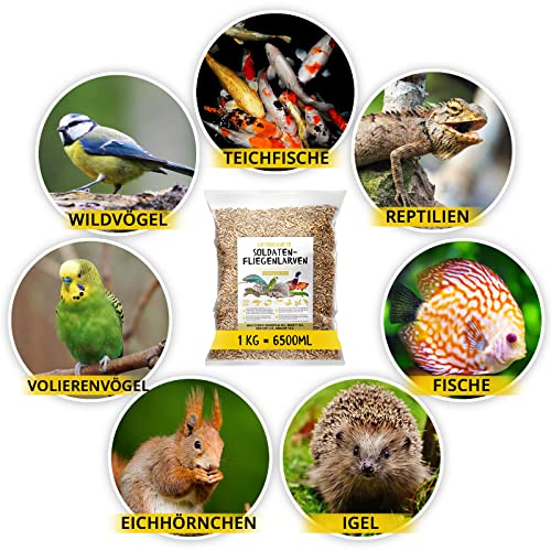 Soldatenfliegenlarven, Black Soldier Fly getrocknet, 1kg (entspricht 6,5 Litern!) Futtermittel im Beutel, der…