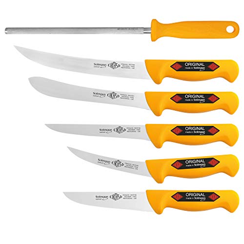 EIKASO Solingen 6-Teiliges Profi Messer Set geeignet als Metzgermesser, Fleischermesser, Schlachtermesser, Ausbeinmesser & Kochmesser (Gelb)