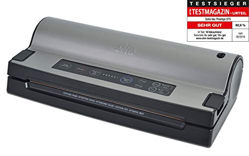 8 x längere Dauerhaftigkeit bei der Aufbewahrung von Lebensmitteln im Kühlschrank, Gefrierbrandschutz und Aromaverlust bei der langfristigen Aufbewahrung im Tiefkühler, Testmagazin-Beurteilung: „Allerbest okay“ – Aufbewahrung ohne Konservierungsstoffe: Sinnvoll Statt dessen Fleisch, Fisch, Käse, Salat, Obst, Gemüse, Kräuter, Suppen, Pulver, Tierfutter gleichwohl bekannt als Münzen, Schmuck, Kleidung – Schnell und einfach: Individuelle Größen auf Grund der Tatsache integriertem Folienschneider (bis zu 30 cm Breite), Manuelles Verschweißen (Schweißnaht 2,5 mm), Mehrfachverwendung, Berührungsempfindliches Bedienfeld – Statt dessen trockene und feuchte Lebensmittel (herausnehmbare Tropfschale), Pulse-Ablichtung Statt dessen druckempfindliche Speisen, Marinierfunktion in Behältern mithilfe eines Vakuumierschlauchs – Lieferumfang: 1 Solis Vakuumiergerät, Vac Prestige, Leistung: 130Watt, BxHxT: ca. 40×9,5x19cm, Gewicht: 2,3kg, Inkl. 2 Rollen (20×300/30x300cm), 10 Beutel (5x 20x30cm, 5x 30x40cm), Vakuumierschlauch