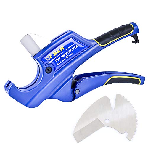 S&R Rohrschneider mit 2 Klingen, Ratschen-Rohrschere, Leitungsschneider für Kunststoff-Rohre bis 42 mm (1 5/8 Zoll) aus…
