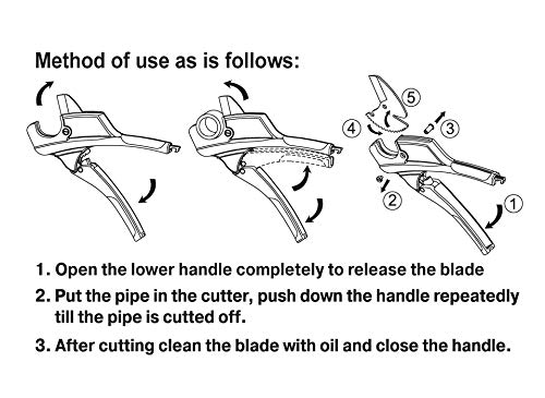 S&R Ratschen-Rohrschneider, Leitungsschneider sondern einfaches Absicheln von PVC, CPVC, PE-X, PE (Polyethylene tube) ansonsten PPR Rohren mithilfe Rohrdurchmesser bis 42mm (1 5/8 Verzinsung)