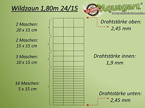 Stabiler Wildzaun 50m von Aquagart 180/24/15 Schwere Ausführung Zaun Höhe 180 cm, 24 Horizontaldrähte Maschenbreite: 15…