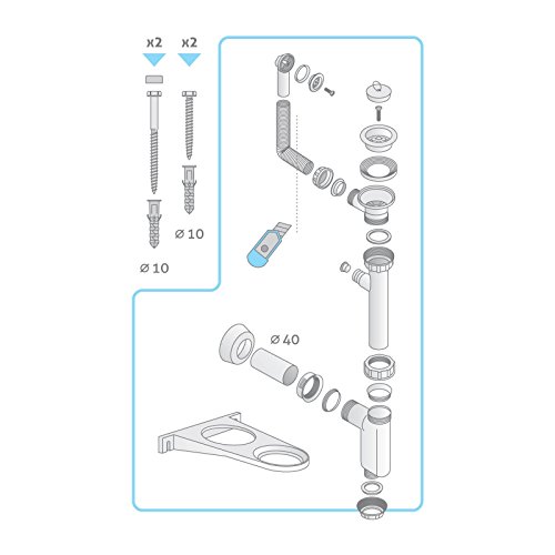 Lieferumfang: Ausgussbecken, Befestigungsmaterial, Anschlussgarnitur ebenso Montageanleitung