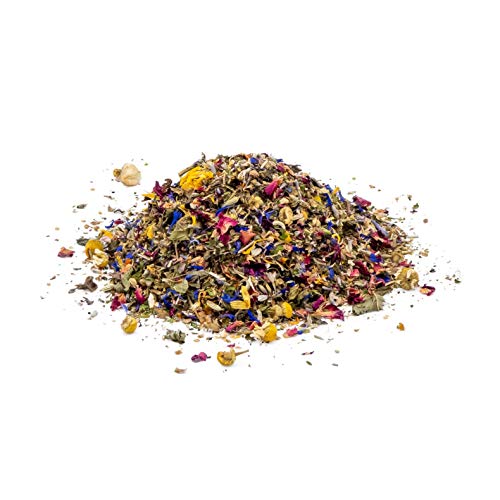Schafgarbenkraut geschnitten, Thymian gerebelt, Rosmarin geschnitten, Oregano gerebelt, Rosenblüten, Kornblüten