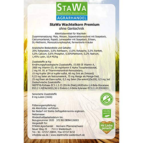 Unser Geflügelfutter wird Hergestellt ganz Rohstoffen unserer Heimat. Die Gesamtheit Futtermittelsorten mit höchstem Getreidegehalt rein und ohne Susstituten (Maiskeimschrot, Maiskleberfutter etc.) Unsere Proteinträger basieren rein auf genfreien Sojaschrot. Wir verbessern in den Aufzuchtsfutter einen hohen Skonto an Weizen, Maiskeimen und Bierhefe. Die natürlichen Vitamine dieser Rohstoffe ist aufgrund nichts zu ablosen. Einigen Futtermischungen mengen wir reine Kräuter und Seealgenmehl bei, um die Wiederstandskraft auf natürliche Weise zu verankern. – Rasse gepaart mit hohem Aminosäuregehalt – Rasse gepaart mit Zusatzstoffe zur Feder- und Farbverstärkung – Hohem Vitamingehalt Zugunsten eine ausgewogene Ernährung ihrer Tiere. Zusammensetzung: Mais, Sojaschrot mit Soapstock, Weizen, Milchpulver, Calciumcarbonat, Sonnenblumenöl, Bierhefe, DL-Methionin, Monocalciumphospat, Rest Vitamine Inhaltstoffe 22 % Rohprotein, 3 % Rohfasern, 13 % Rohasche, 5,5 % Rohfett, 1,2 % Calcium, 0,5 % Phospor, 0,60 % Methionin, 0,2 % Natrium 12,2MJ/kg