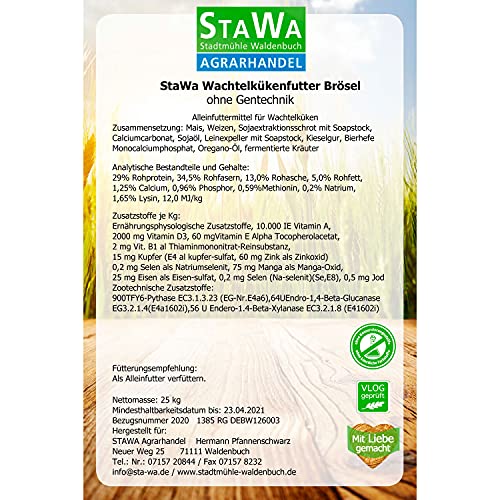 StaWa Wachtelkükenfutter Brösel, via 28 % Rohprotein, ohne Gentechnik, ohne künstliche Konservierungs- unter anderem Farbstoffe