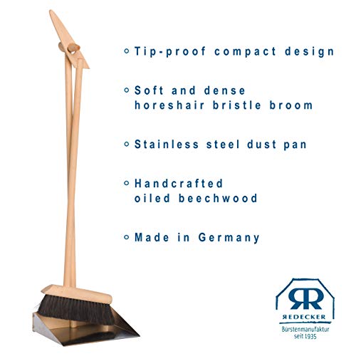 Bürstenhaus Redecker 180690 Steh-Kehr-Set zäh und kippsicher, Stiele aus geöltem Buchenholz, Besen aus Rosshaar, Edelstahlschaufel, rostfrei Größe: 90 cm