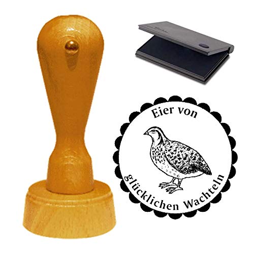 Anhand dem Holzstempel können Sie leer einfach Ihre Eierverpackungen bestempeln und vermitteln Ihren Abnehmern Ihre tierfreundliche Vereinigung zu Ihren Wachteln.