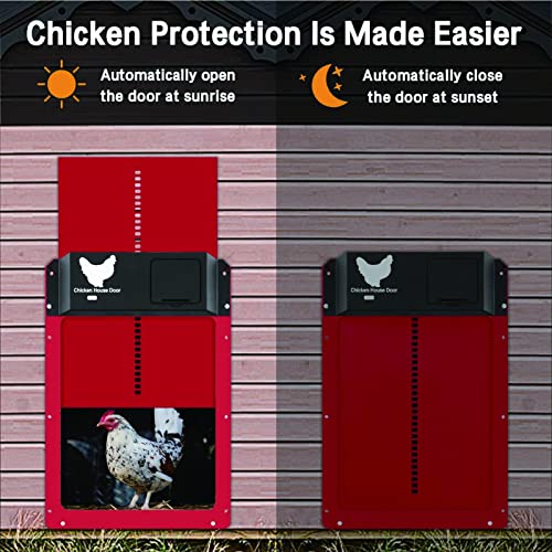 【AUTOMATISCHE HÜHNERHAUSTÜR】 Dieser automatische Türöffner für Hühnerställe verfügt über eine wasserdichte Foto, ein robustes Design, einen Lichtsensor, eine einfache Benutzeroberfläche und den wichtigsten Lichtsensor, der sich nachts und tagsüber um die Freilandhaltung Ihrer Hühner kümmern kann.