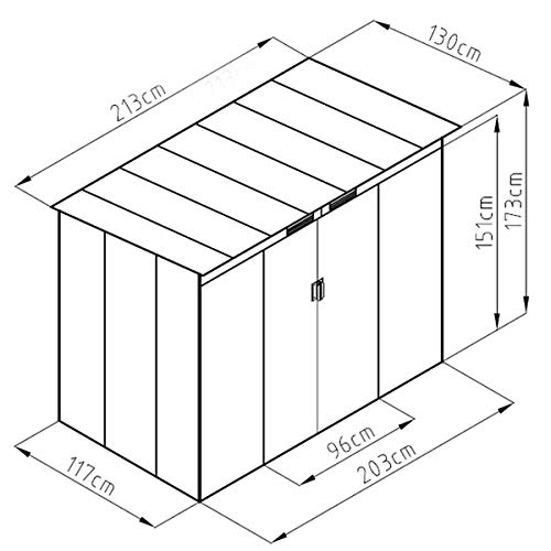Gesamtgröße: ca. 213 × 130 × 173 cm (L x B x H) – 2 Schiebetüren / 2 Belüftungsgitter