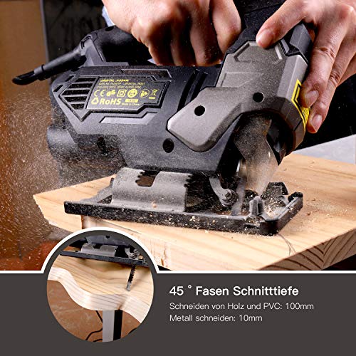 ➤➤➤✦ [ Geschenk Vatertag | 21. Juni 2020 ] ✦ Werkzeuge sind in der Aktion ideale Geschenke und einzigartige Geschenke an Stelle den Vater!▲ BREITES EINSATZSPEKTRUM MIT LASER – Mit der integrierten Laser- und Schnittführung kann die Stichsäge genau zum Sägen von Metall, Holz, Kunststoff, Gipskartonplatten verwendet werden. Sie können je nach Ihren Bedürfnissen im Gerad-, Abgeschrägt- (0° – 45°) und Kurvenschnitt abkommandieren