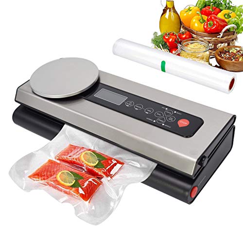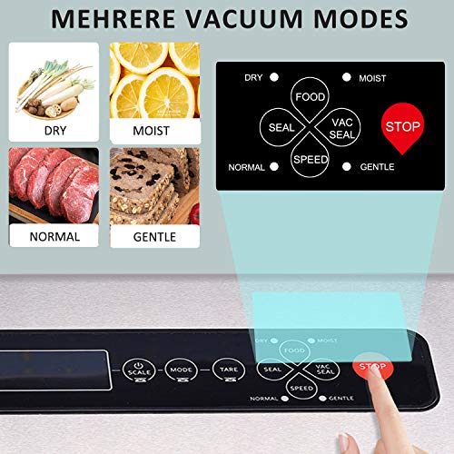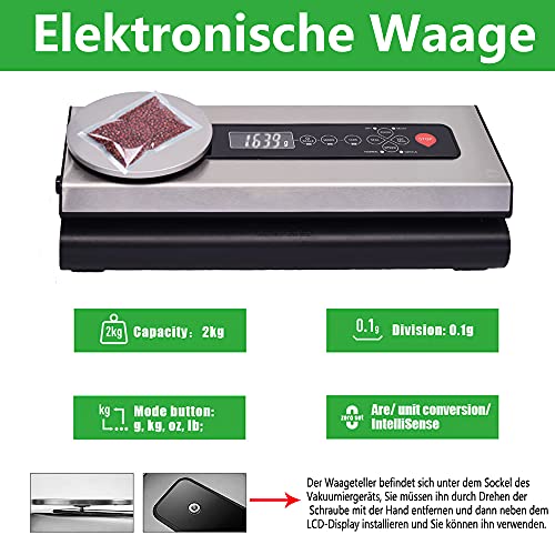 Vakuumierer Vakuumiergerät -80kPa 120W mit integrierter Küche Waage bis 2kg aus Edelstahl Lebensmittel frisch bis 8 mal…