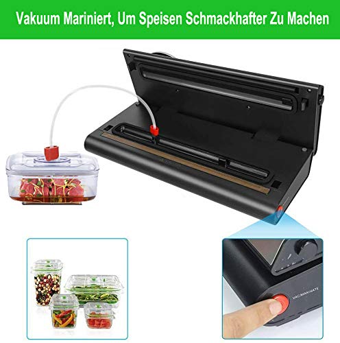 【Frischhalten & Gesünder essen bis Vakuumiersystem】Das Vakuumiergerät ist mit einer leistungsstarken 80kPa-Vakuumpumpe zur schnellen Luftentfernung ausgestattet. Das Vakuumieren von Lebensmitteln kann die Haltbarkeit von Lebensmitteln bis zu 8-mal gegenüber herkömmlichen Methoden verlängern, wobei der ursprüngliche frische Geschmack erhalten bleibt. Vorbeugen Sie verdorbene Lebensmittelabfälle und sparen Sie gleichzeitig Geld, Zeit und Ärger beim Übernahme von Ersatz-Lebensmitteln im Supermarkt.