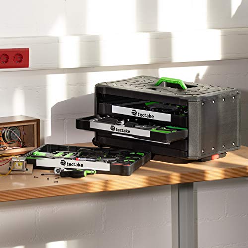 Praktischer Trolley Werkzeugkoffer mit 899 Teilen. Das Werkzeug besteht zu einem Bruchstück aufgebraucht Chrom Vanadium. Im hochwertigen Koffer sind Mischung Werkzeuge wie Zangen, Schraubendreher und unbegrenzt Zubehör auf 4 Ebenen platzsparend untergebracht. Unser Werkzeug ist sowohl für den Hausgebrauch im Alltag, nichtsdestotrotz aka für Profis super passend. Der Werkzeugkoffer verfügt über Rollen und einen Teleskopgriff zum Ziehen.