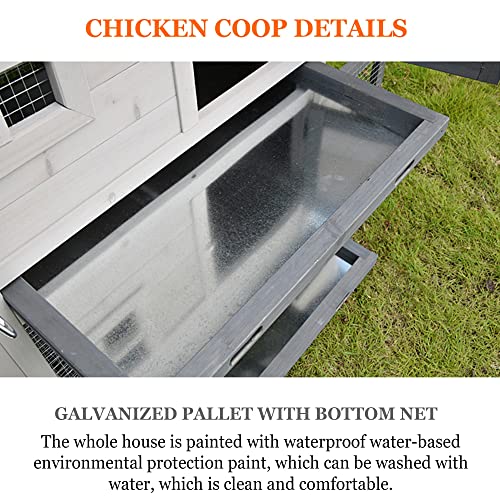 【Eigenschaften】 -mit verzinkter Palette mit Bodennetz, die Hühner sind bequem zu bedienen und der Besitzer ist jeden Tag leicht zu pflegen. Es gibt einen Hühnerständer und eine Leiter im Inneren, damit Haustiere spielen und sich bewegen können. verfügt über abschließbare Türen, die beim Ausgehen versperrt werden können, um Raubtiere zu vorbeugen. Laufkäfig mit verzinktem Gitter. Im Unterschied dazu kann der Besitzer jederzeit den Spielstatus und die inneren Zustände des Haustieres leicht beobachten.