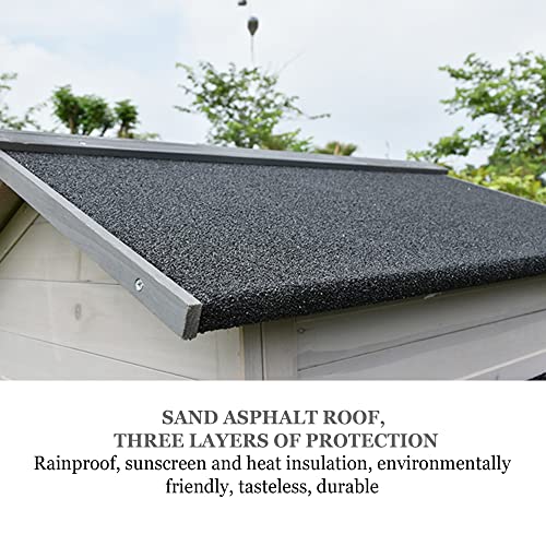 【Material】 – Hühnerstall besteht aus Tanne. Das Holz ist weich, lässt sich nicht leicht verformen und hat einen schwachen Holzduft. Das Dach des Laufkäfigs besteht aus Sandasphaltschindeln, die aus kleinen Sandkörnern, Asphalt und Holzbrettern bestehen, die regenfest und wärmeisolierend sind. Es wird im Freien aufgestellt und hat keine Angst vor Wind und Regen. Das Haupthaus ist innen und außen mit umweltfreundlicher Farbe auf Wasserbasis beschichtet und kann direkt mit Wasser gewaschen werden.