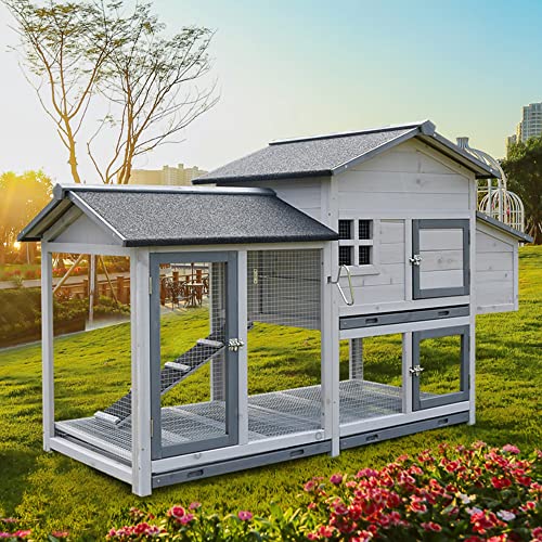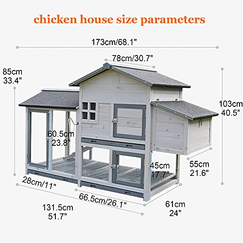 【Größe des Hühnerstalls】 – Der robuste und vielseitige supergroße Hühnerstall. Nach dem Zusammenbau beträgt die Gesamtgröße 173 x 78 x 103 cm. Das Design des Laufkäfigs mit großem Aktivitätsraum am Boden eignet sich sehr gut für Hühner, Kaninchen, Enten und andere Kleintiere, die Platz für 4-5 Hühner bieten. Hühnerställe sind ideal für die Platzierung in Terrassen, Gärten und vor der Haustür Ihres Hauses. Es ist die beste Synchronisation für Ihre Haustiere