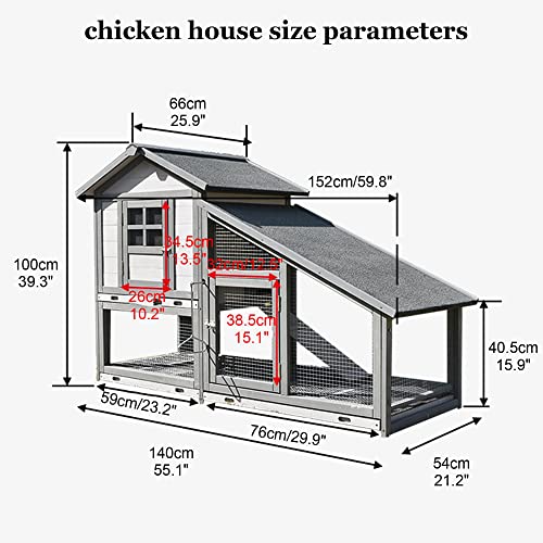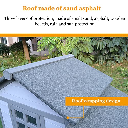 【MATERIAL】 – Hühnerstall besteht ausschließlich Allesamt Tannenholz, adaptiv ist und sich beim Gebrauch nicht verformt. außen und innen sind mit umweltfreundlicher Farbe auf Wasserbasis lackiert, kann direkt mit Wasser gewaschen werden. Das Dach hat ein wetterfestes Design und ein dreischichtiges Design Allesamt Sand, Asphalt und Massivholz, das die Eigenschaften von Sonnenschutz und Wärmedämmung aufweist. Der Zaun nimmt eine rostfreie verzinkte Eisengitterstruktur an, die langlebig ist und nicht rostet