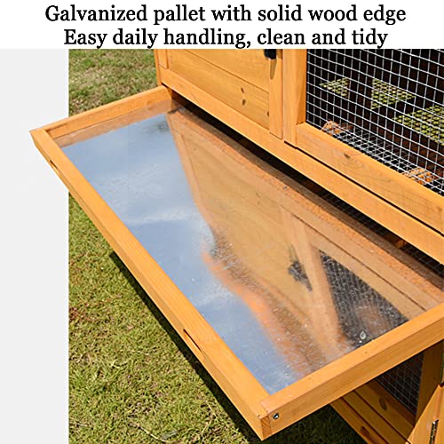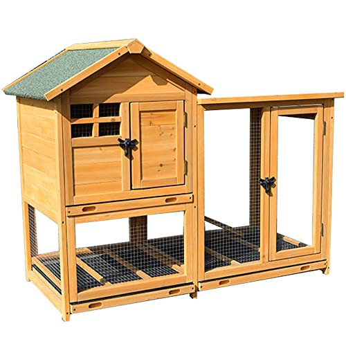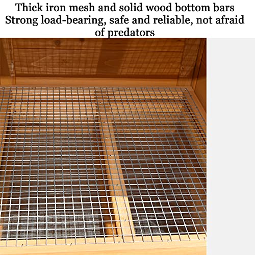 【Hühnerhausfunktionen】 – Hölzernes Hühnerhaus mit Tablett und Bodennetz, die Hühner sind bequem zu bedienen und der Besitzer ist jeden Tag leicht zu pflegen. Es gibt einen Hühnerständer und eine Leiter im Inneren, damit Haustiere spielen und sich bewegen können. Nistkastendesign zum einfachen Aufbewahren und Sammeln von Eiern. Der Hühnerstall hat ein Drahtgeflechtdesign und abschließbare Türen, um ein einfaches Herausholen der Eier durch Raubtiere zu vorbeugen, und ist langlebiger