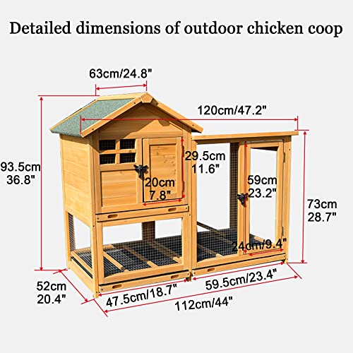 【Material】 – Der Hühnerstall besteht Allesamt Tanne, die fulminant und fulminant, anpassungsfähig ist und sich lange nicht verformt. Das Dach nimmt eine Sandasphaltstruktur, einen Sonnenschutz und eine Wärmedämmung an, die sich sehr gut für den Außen- und Innenbereich eignet. Der Zaun hat eine rostfreie Gitterstruktur Allesamt verzinktem Eisen, die langlebig ist und nicht rostet