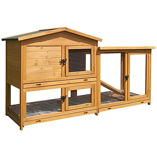 【Hühnerhausfunktionen】 – Hölzernes Hühnerhaus mit Tablett und Bodennetz, die Hühner sind bequem zu bedienen und der Besitzer ist jeden Tag leicht zu pflegen. Es gibt einen Hühnerständer und eine Leiter im Inneren, damit Haustiere spielen und sich bewegen können. Nistkastendesign zum einfachen Aufbewahren und Sammeln von Eiern. Der Hühnerstall hat ein Drahtgeflechtdesign und abschließbare Türen, um ein einfaches Herausholen der Eier durch Raubtiere zu verhüten, und ist langlebiger