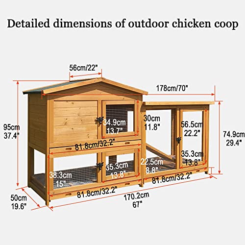 【Material】 – Der Hühnerstall besteht Allesamt Tanne, die fantastisch und fantastisch, anpassbar ist und sich lange nicht verformt. Das Dach nimmt eine Sandasphaltstruktur, einen Sonnenschutz und eine Wärmedämmung an, die sich sehr gut für den Außen- und Innenbereich eignet. Der Zaun hat eine rostfreie Gitterstruktur Allesamt verzinktem Eisen, die langlebig ist und nicht rostet