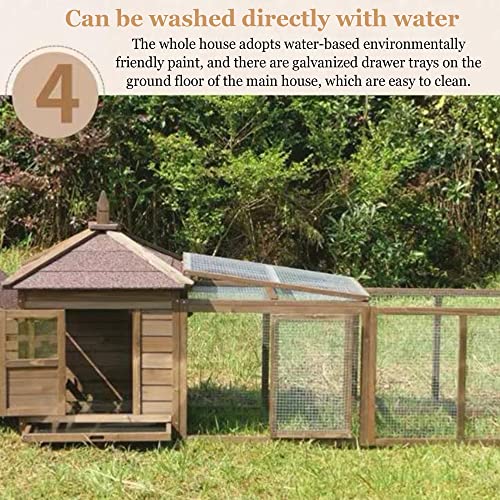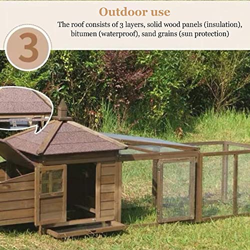 【Eigenschaften】 – Hölzerner Hühnerstall, Laufkäfig ist abgeplattet und hat viel Bewegungsfreiheit. Der Laufkäfig ist mit verzinktem Eisengitter ausgestattet, das wahnsinnig und langlebig ist und nicht rostet, wodurch Raubtiere vor Aggressionen geschützt werden können. Mehrtüriges Design, laufende Käfigtür, obere Tür, 2 Türen im Haupthaus, die obere Sicherheiten der Eierbox kann geöffnet werden. Es gibt 2 Nistkästen im Inneren, die Eier legen, ohne zu ablenken, Eier einfach zu deponieren und zu sammeln.