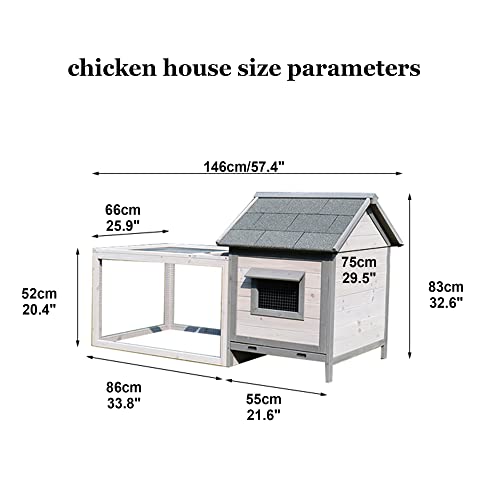 【HÜHNERSTALLGRÖSSE】 – Der Hühnerstall hat ein abseits langes Design. Nach der Montage insgesamt lang 146 cm lang, betrunken 75 cm und hoch 83 cm. Die Größe des Laufkäfigs beträgt 86 x 66 cm, die Größe des Haupthauses 66 x 55 cm und die Größe der Türöffnung des Haupthauses 32 x 34 cm. Mit großem Aktivitätsraum, kann 6 Kleintiere gleichzeitig halten