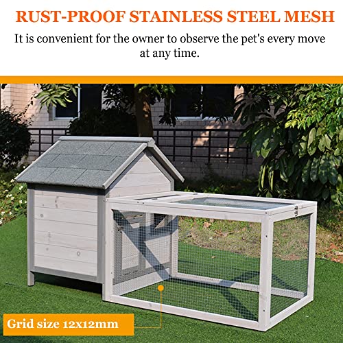 【HÜHNERHAUS-FUNKTIONEN】 – Hölzernes Hühnerhaus, laufendes Käfig-Eisengeflecht ist aus Edelstahl, die Maschenweite beträgt 12 x 12 mm, es ist einfach, jede Bewegung des Haustieres jederzeit zu beobachten und gleichzeitig mit ihm zu interagieren. Die Tür ist mit einem Türschloss ausgestattet, das sich leicht öffnen und suffigieren lässt, und die Verwendung ist garantiert, wodurch Angriffe von Raubtieren wirksam verhindert werden. mit Nistkasten-Design zum einfachen Aufbewahren und Sammeln von Eiern.