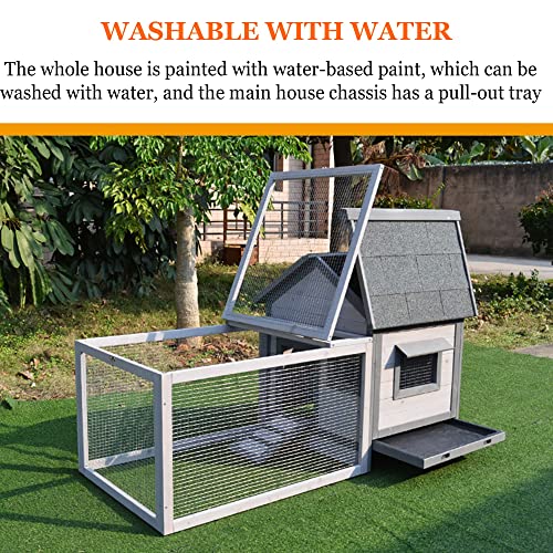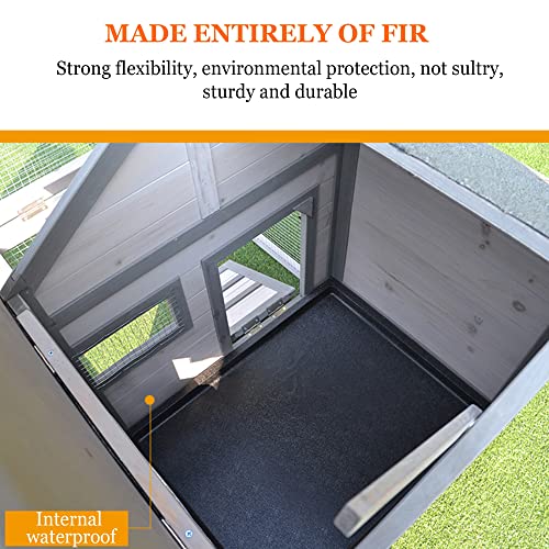 【MATERIAL】 – Der Hühnerstall besteht ausschließlich aus Tannenholz, das fantastisch und fantastisch, anpassungsfähig ist und sich beim Gebrauch nicht verformt. außen und innen sind mit umweltfreundlicher Farbe auf Wasserbasis lackiert, kann direkt mit Wasser gewaschen werden. Das Dach hat ein wetterfestes Design und ein dreischichtiges Design aus Sand, Asphalt und Massivholz, das die Eigenschaften von Sonnenschutz und Wärmedämmung aufweist.
