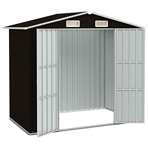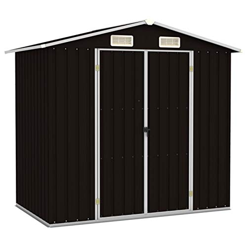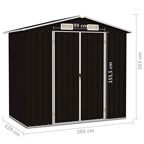 Tidyard Gerätehaus Gartenschuppen Schuppen entfernen Lagerschuppen sämtliche verzinktem Stahl,Ohne Boden,Geräteschuppen 205 x 129 x 183 cm,Doppeltüren,Fase Dach