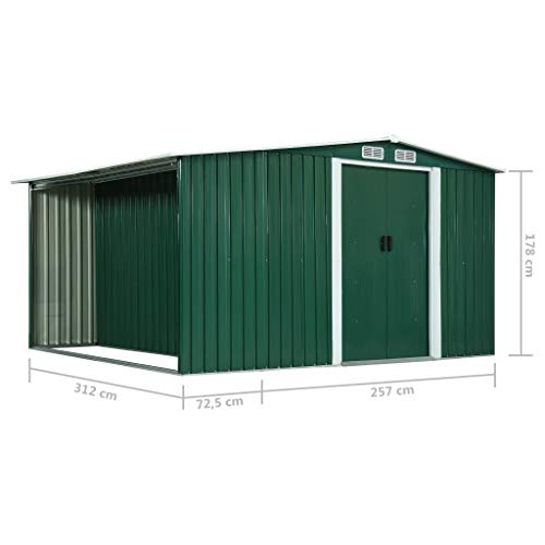 Auf Grund der Tatsache des korrosionsbeständigen, verzinkten Stahls ist der Gartenschuppen robust und langlebig. Der Lagerschuppen muss vor dem Gebrauch montiert werden.