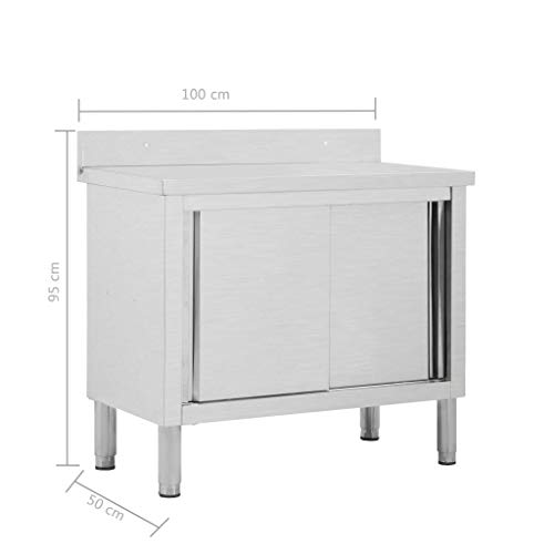 Tidyard Restaurantschrank Arbeitsschrank Gastro-Arbeitstisch Mit Stauraum,Aktenschrank Edelstahltisch 100 x 50 x 95 cm Mit 2 Schiebetüren,Edelstahl